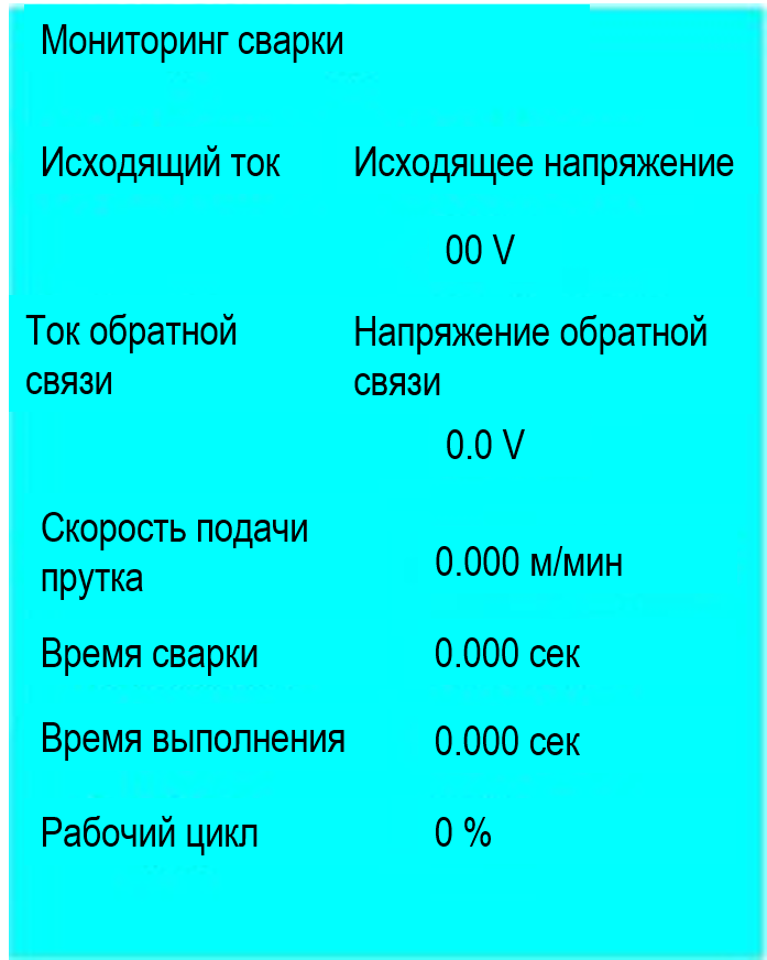 Мониторинг в режиме реального времени может отображать: ток, напряжение, время сварки, время выполнения программы.