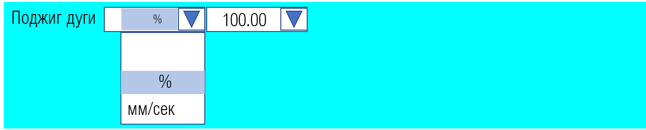 Скорость сварочного процесса: в инструкции движения робота задавайте скорость движения в процессе сварки, выбирая линейную скорость (мм/с) или номинальную скорость во время движений перемещения (%)